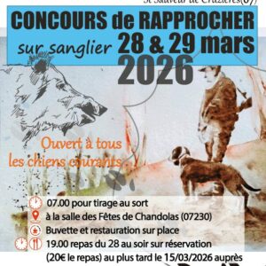 Le week-end des 28 et 29 mars 2026, est organisé à la salle polyvalente du Verdal un concours de rapprocher sur sanglier par l’association « Les […] ...