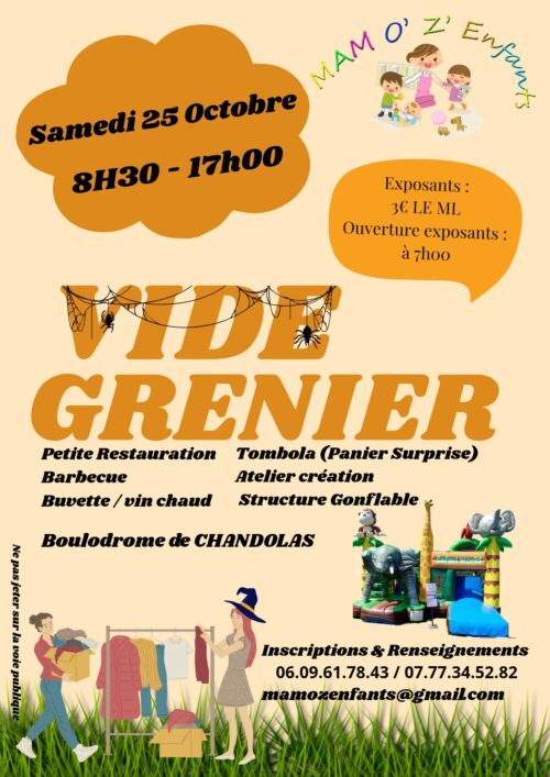 Rien de prévu le samedi 25 octobre ? Venez profiter ou participer au vide-greniers de la MAM, de 8h30 à 17h00 !